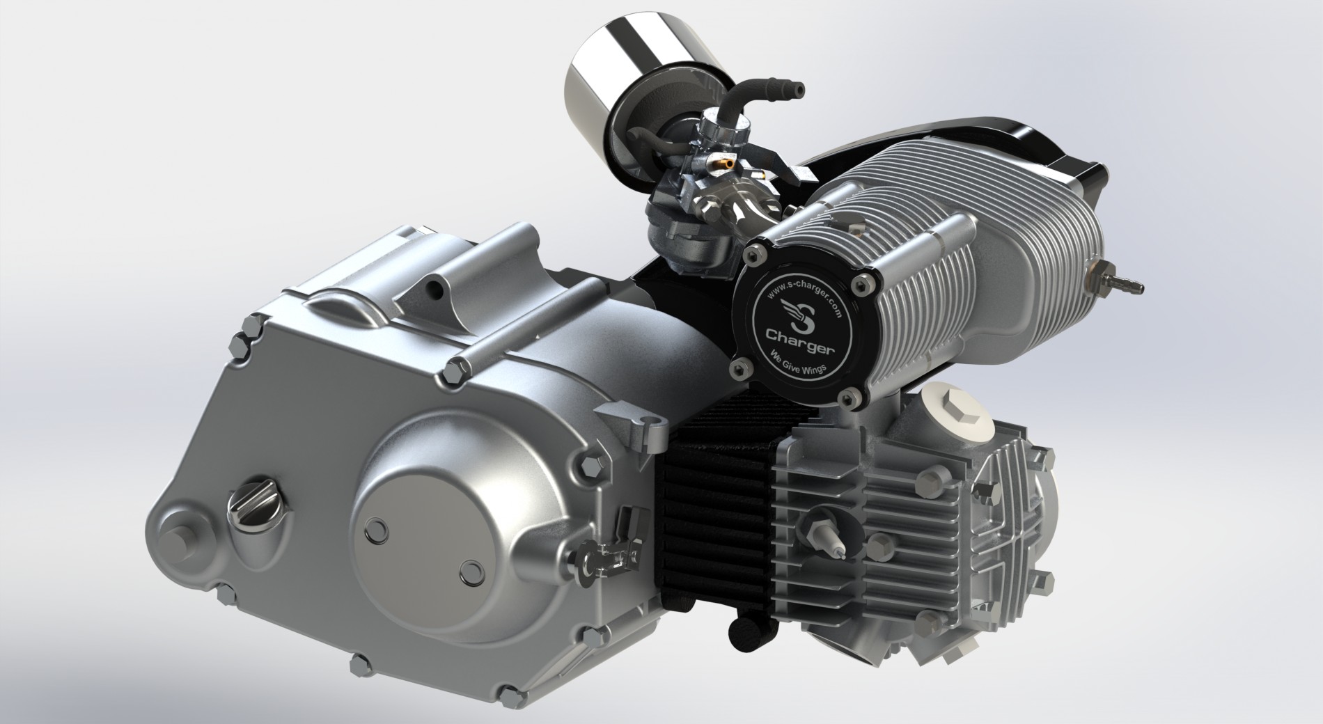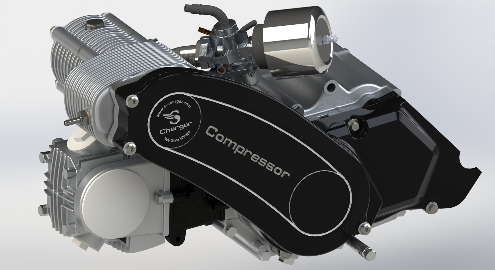 The newly developed supercharging system for a 50cc – 125cc engine provides more than a 50% increase in power.  Mass production of this supercharger guarantees affordable price of the supercharger and plug-and-play installation kit.