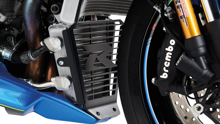 Grangier supplanted the full board with a little light cover with a squat circle. There are two new side radiator cowlings, a front spoiler and a little radiator grille. A progressively upstanding riding position is guaranteed by a Motacc Superbike handlebar mounted on another upper triple tree from a similar maker. Little LED turn signals total the change. The imagined Akrapovic exhaust, similar to the GSX-R, is just accessible at an extra expense.