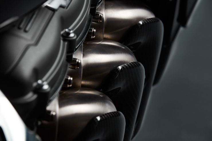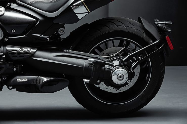 It gets the Arrow 3-in-1-in-3 stainless steel exhaust system that allows the new Triumph Rocket to emit the smoke.The 3-in-1-in-3 exhaust is also put on the Rocket in a way where in two openings are on the right side and one on the left.