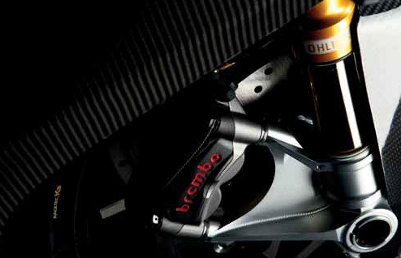 | Front brake: | 2 x 330mm full-floating discs. Radially-mounted Brembo monobloc calipers. Brembo discs and Brembo master cylinder | Rear brake: | Single 245mm disc. Brembo caliper and master cylinder |