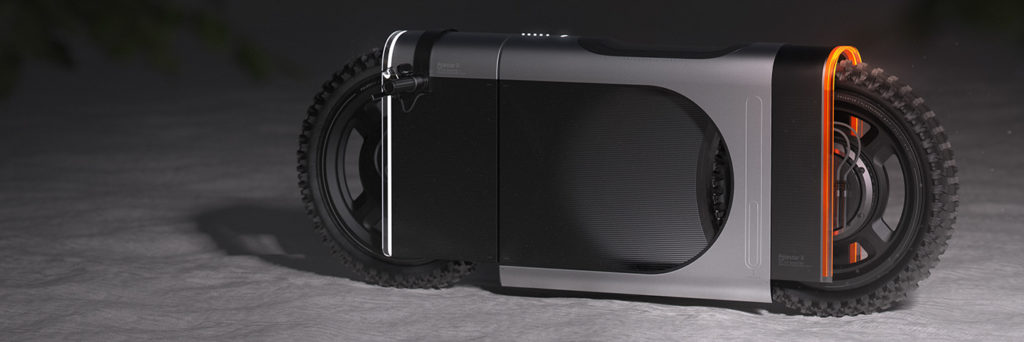 The rectangle portion of this concept looks little mystery as from the design it does look like the rectangle can also house the two tires that are seen out.