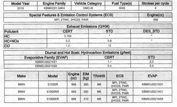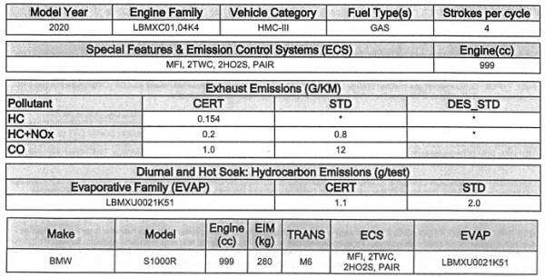 The new 2020 BMW S1000XR is likely to change when compared with 2019 and 2020 CARB documents.