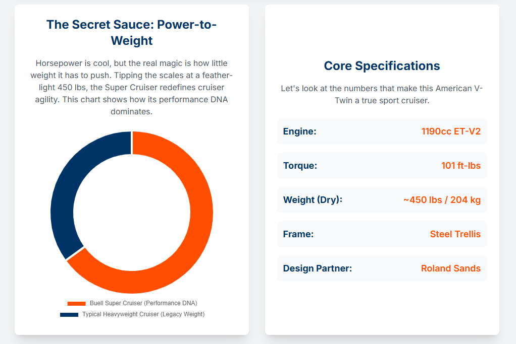 | Key Specification | Buell Super Cruiser (Claimed) | Insight |