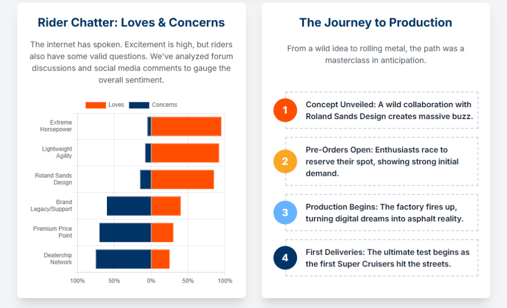 While the performance is lauded, the aesthetics of the Super Cruiser are profoundly polarizing. The aggressively functional design has resulted in severe critiques from armchair enthusiasts who readily “knock the Super Cruiser for its aesthetics”.2 Specific design choices, such as the 17-inch wheels, are described as looking “goofy on a cruiser,” and the rear fender has been singled out as the “UGLIEST” some have ever seen.17 This reaction confirms that Buell and RSD made a calculated choice: the bike cannot please everyone. By embracing the functional, club-style racing look, they traded universal mass appeal for the intense, passionate brand loyalty generated by machines that defy convention. The resulting debate and strong opinions—even outright disdain—fuel conversation and act as powerful organic marketing.