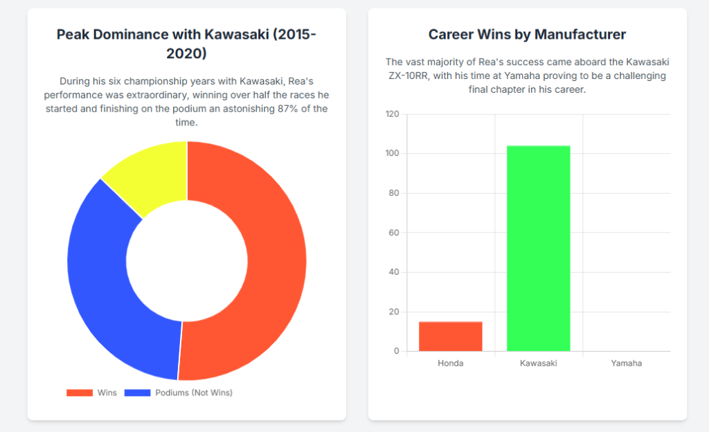 What makes these records truly remarkable is the context behind them. During his period of peak dominance with Kawasaki, from 2015 to 2020, Rea’s performance transcended mere victory. He won 84 of the 164 races he started in that period, an astonishing 51% win rate. When his podium finishes are included, that percentage climbs to 87%, with only eight retirements and a lowest finish of sixth when he took the checkered flag. This level of consistent performance and statistical supremacy is a rarity in modern motorsports and established Rea’s status as the “GOAT” (Greatest of All Time) of WorldSBK, a view widely shared by fans and pundits.