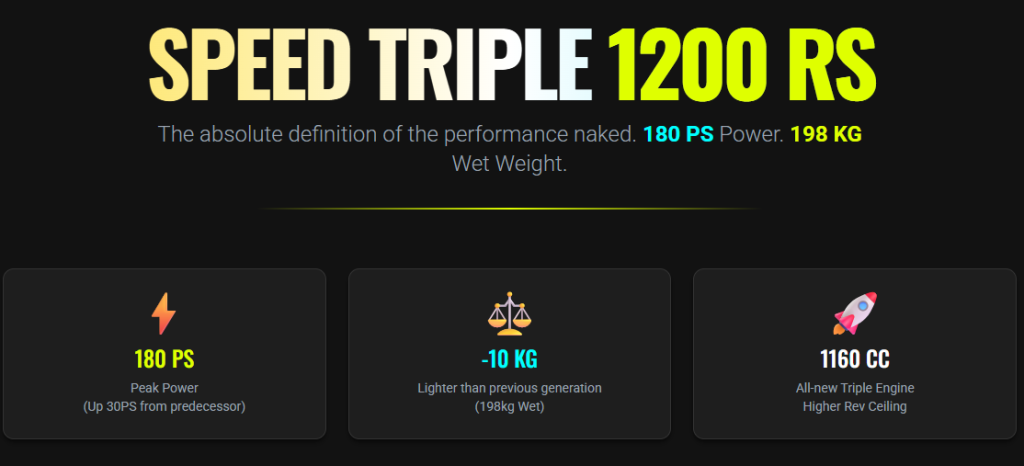- ALL NEW SPEED TRIPLE 1200 RS – TRIPLE POWERED REVOLUTION, accessed on December 14, 2025, https://triumph-mediakits.com/en/news-articles/all-new-speed-triple-1200-rs-triple-powered-revolution.html?highlight=Triumph