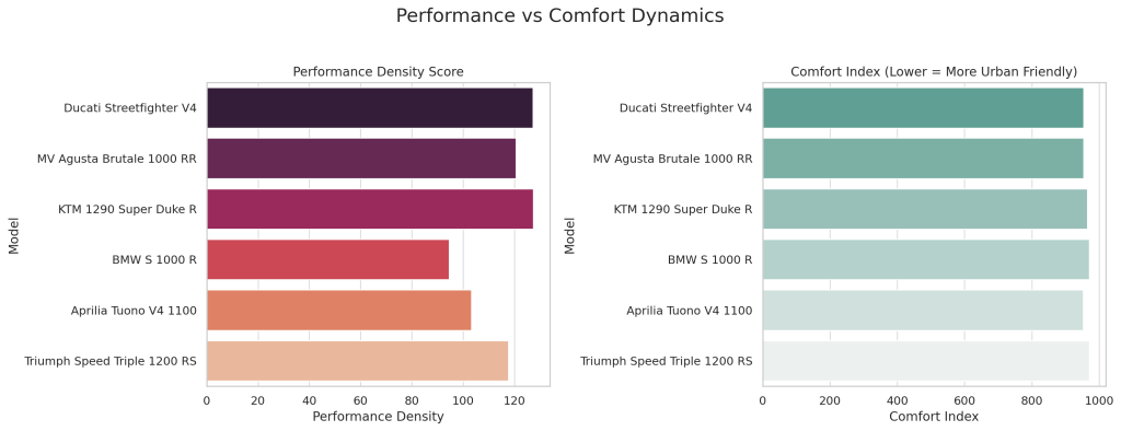 Ergonomically, these naked bikes generally offer more upright riding positions than superbikes, but compromises exist. Issues like wrist fatigue in traffic, engine heat management, and limited fuel range can detract from long-distance comfort or daily usability. This highlights an inherent design tension: the more a naked bike leans into its superbike lineage for performance, the more likely it is to carry over some of the superbike’s less street-friendly characteristics.