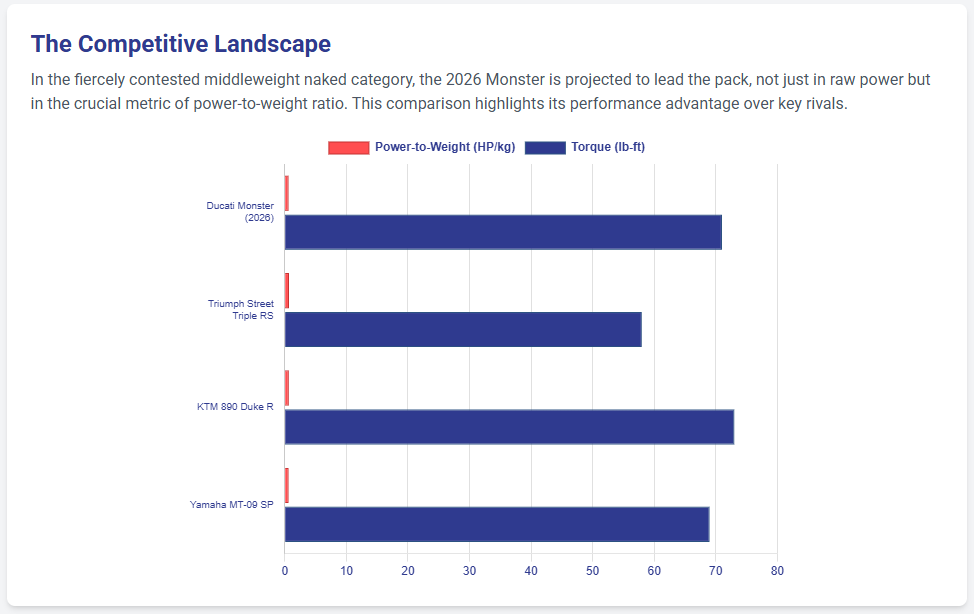 The revised 2026 Ducati Monster V2 is strategically positioned to reinforce its dominance in the premium lightweight naked category while making an aggressive play for market share traditionally held by volume manufacturers.