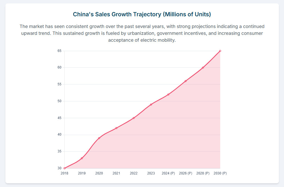 In terms of quantifiable metrics, the sheer magnitude of the Chinese E2W market demonstrates its global importance. The domestic market size was recorded at approximately 4,743,145 units in 2024.3 While the Asia-Pacific region is the dominant regional contributor, led by China and India, the expected growth trajectories reflect different stages of market maturity. China’s E2W sector is projected to grow at a Compound Annual Growth Rate (CAGR) of 7% from 2024 to 2029.3 This robust but moderate growth contrasts sharply with emerging, high-potential markets like India, which is projected to achieve a 27% CAGR over the same period, signaling India’s rapid adoption phase.3