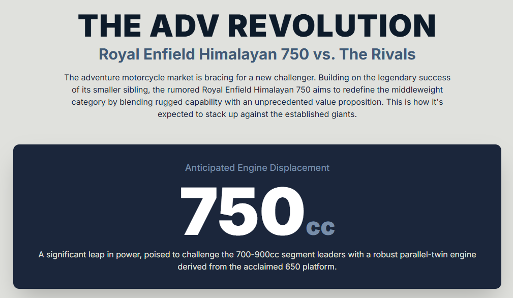 The forthcoming Royal Enfield Himalayan 750 is poised to execute a pivotal move in the global adventure motorcycle market. The strategic decision to forego the costly, liquid-cooled, high-horsepower pathway in favor of simplicity, affordability, and enhanced ruggedness is a calculated masterstroke.
