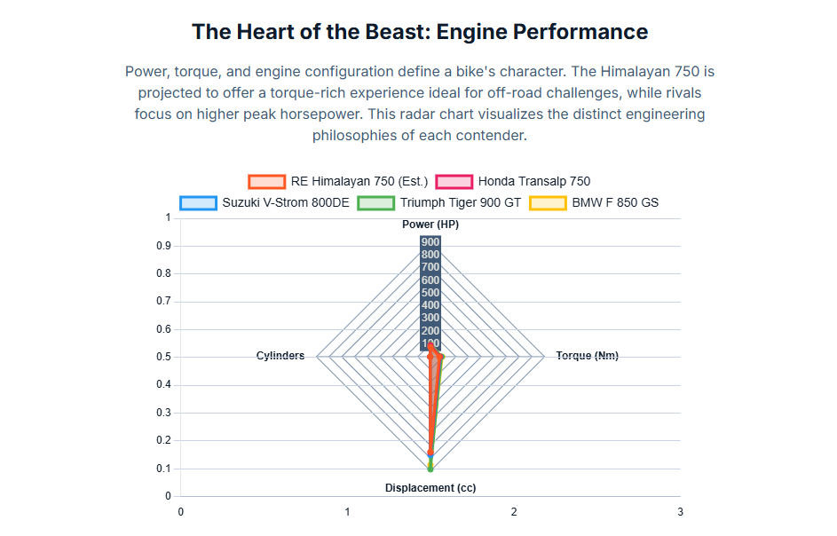 | RE Himalayan 750 (Est.) | 750 Parallel Twin | Air/Oil | ~55 | ~60 | ~4.50 1 |