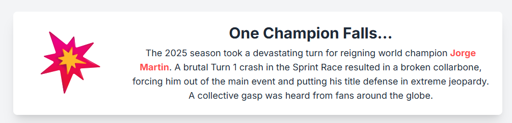 II. The Fates Aligned: The Collarbone Curse and Jorge Martin’s Catastrophe