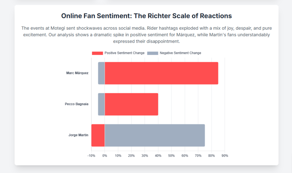 Marc Márquez is undeniably a global titan, commanding the highest salary in the sport at $12 million, double that of his closest peers, Bagnaia and Martin.22 He ranks consistently as a top-three favorite rider globally.23 Yet, the impending Motegi coronation ignited a fierce debate concerning his legacy.