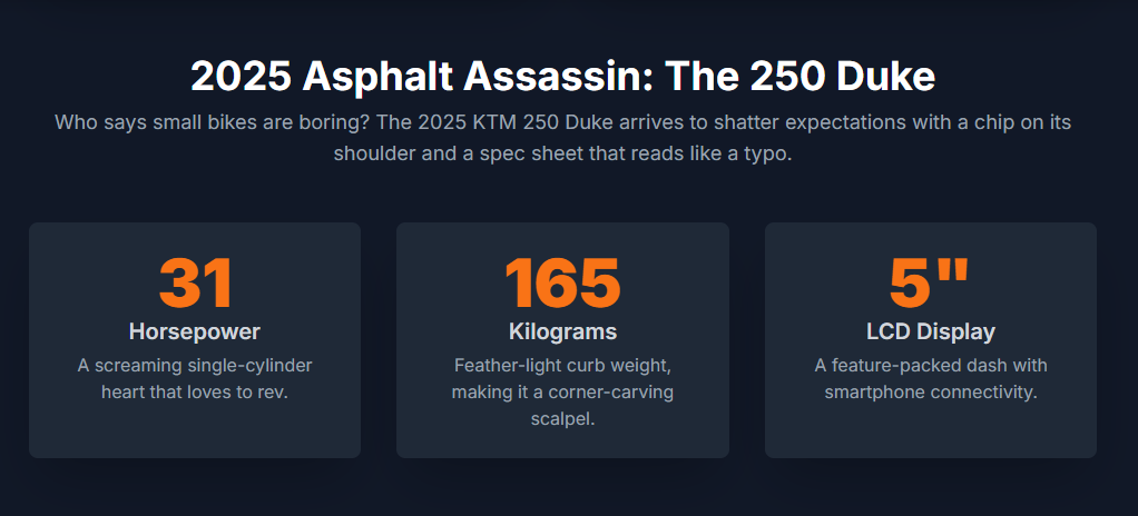 III. The Urban Scrambler: A Deep Dive into the 2025 KTM 250 Duke