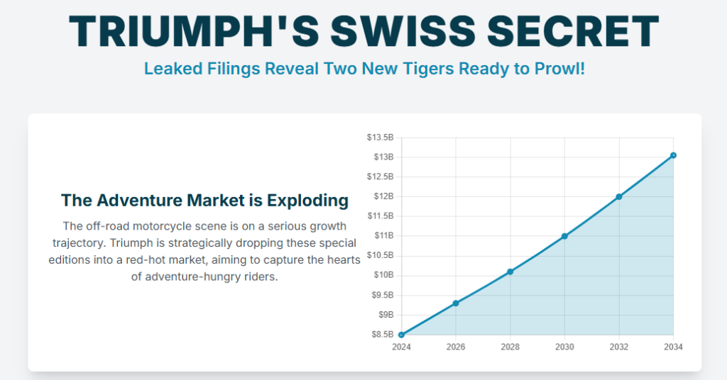 Triumph’s move to release two special edition adventure bikes is a response to the fierce and growing competition in the off-road motorcycle market. This market was valued at an impressive USD 8.50 billion in 2024 and is projected to grow to over USD 13 billion by 2034, with a compound annual growth rate of 4.7%.15 The key driver of this growth is the increasing popularity of adventure and off-road sports, with the enduro and 251-500cc segments dominating the market.15 This environment of expansion has prompted major manufacturers to use special editions as a key strategic tool.