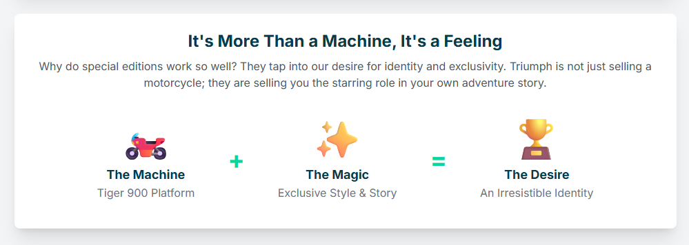 The introduction of the Alpine and Desert editions, which appear to make no mechanical changes to address these longstanding complaints, provides a fascinating look into Triumph’s marketing calculus. The company is confident that the sheer emotional pull of the exclusive styling and the aspirational branding will overshadow any minor engineering or design flaws. This is a common and calculated bet with special editions: they are not designed to fix problems but to inspire an emotional response that makes those problems seem unimportant. The brand believes that the “style” of the new editions is so compelling it will make any issues with the “substance” of the motorcycle entirely irrelevant to the target buyer.30