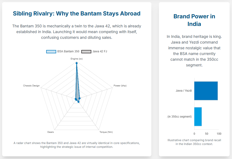 Several key factors influence Classic Legends’ strategy. The company is meticulously managing its brand portfolio, leveraging Jawa and Yezdi for the highly competitive Indian 350cc segment, capitalizing on their strong brand recall and established presence. Conversely, BSA is strategically positioned for international growth, and in India, it is being introduced with more premium, higher-displacement offerings like the Gold Star 650. The Indian 350cc segment is already saturated, and Classic Legends has a robust presence with its own Jawa and Yezdi brands. Introducing the Bantam 350, a mechanically similar model, would lead to internal cannibalization and dilute market share without adding significant strategic value.