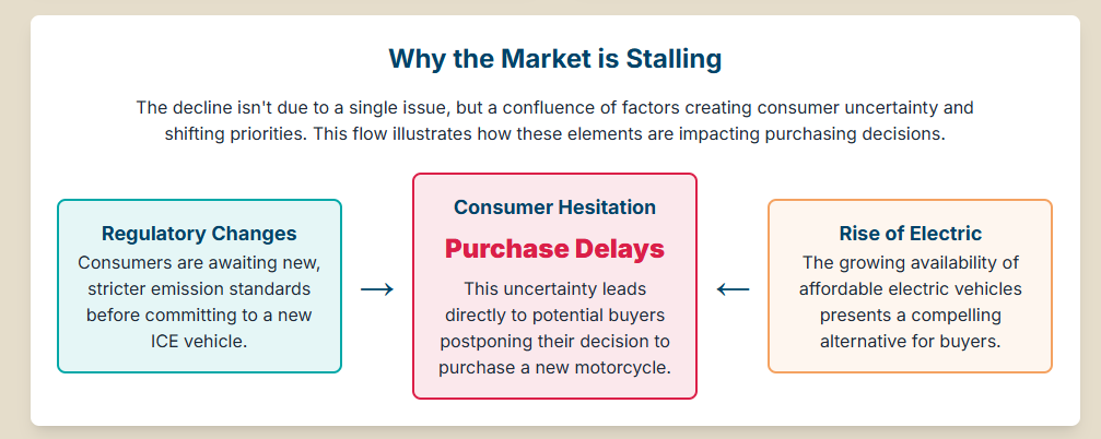 The urban, affluent customer base is exhibiting a “wait-and-see” approach, delaying purchases due to uncertainty.1 They are actively assessing whether purchasing a new petrol vehicle will lead to future restrictions, or if it is more prudent to wait until electric alternatives become more affordable and infrastructure more reliable.1 Because mid-range scooters are a core profit driver for VAMM members, especially Honda, the regulatory shock has directly threatened the financial stability and market dominance of these traditional players by freezing demand in their high-value segment.