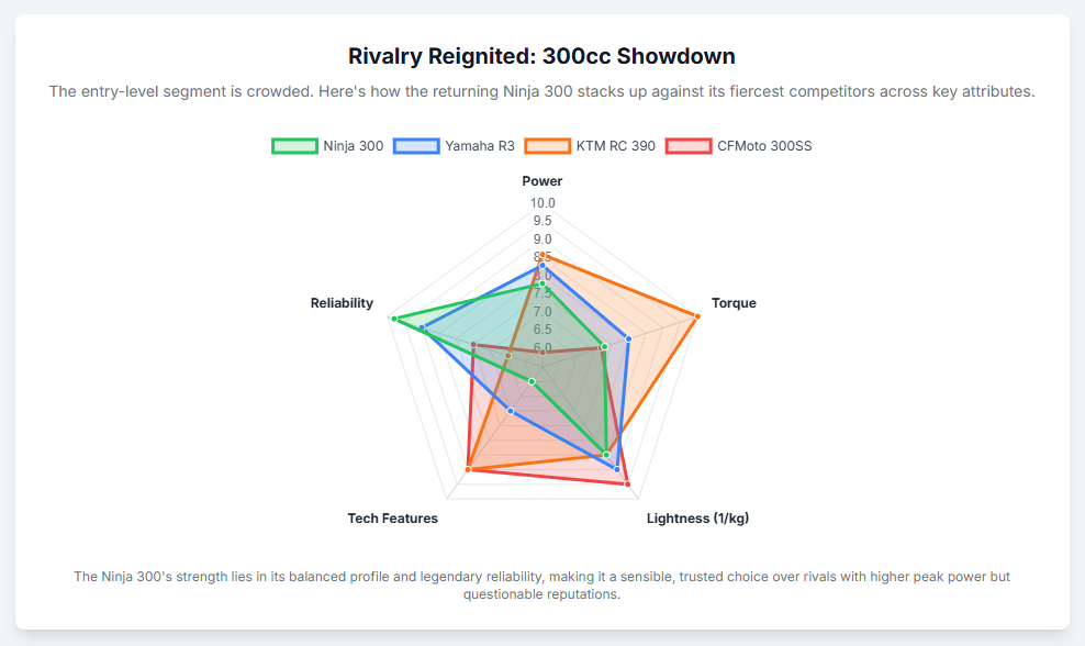 To understand the Ninja 300’s strategic position, a comparison with its key rivals is essential. Below is a breakdown of the contenders based on available and expected specifications.