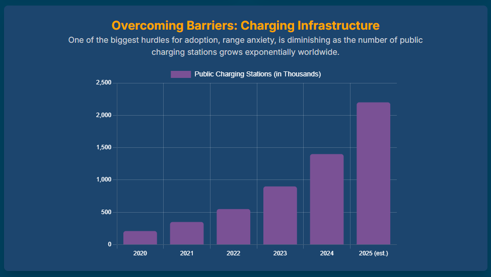 Mass adoption appears inevitable as key technological and economic barriers are systematically dismantled. The cost of batteries is a critical factor, and industry analysts predict that as these costs drop below the USD 75/kWh threshold and technological advancements like solid-state batteries and AI become standard, the value proposition for consumers will become too compelling to ignore.10 The rise of the shared economy and last-mile logistics is also poised to drive significant fleet adoption, with forecasts suggesting that 40% of all food delivery fleets in megacities will be electric by 2027.10