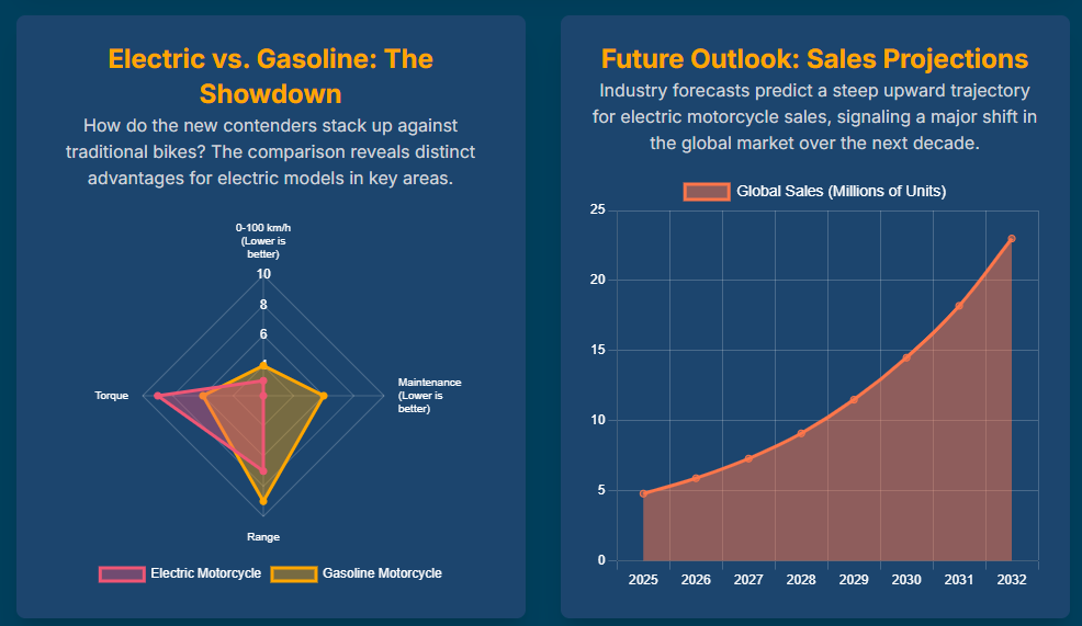 For many enthusiasts, riding a motorcycle is more than a mode of transport; it is a lifestyle, a cultural expression, and a community built around the unique sensory experience of a gasoline engine.5 The loud, raw sound of a combustion engine, the vibrations, and the manual control of a clutch and gears are all central to the experience for many riders.5 The silent and smooth operation of electric motorcycles, while a benefit for urban environments, can be a significant cultural disconnect for these traditional riders.15 This intangible barrier, rooted in decades of association with combustion engines, is perhaps the most difficult for the industry to overcome.11 While manufacturers are attempting to address this by highlighting the thrill of instant torque and unprecedented acceleration, it remains a powerful headwind, particularly in markets with a strong, established motorcycle culture.8